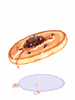 A pancake topped with caviar. Average people have trouble telling the difference between fine caviar and common frog spawn eggs.